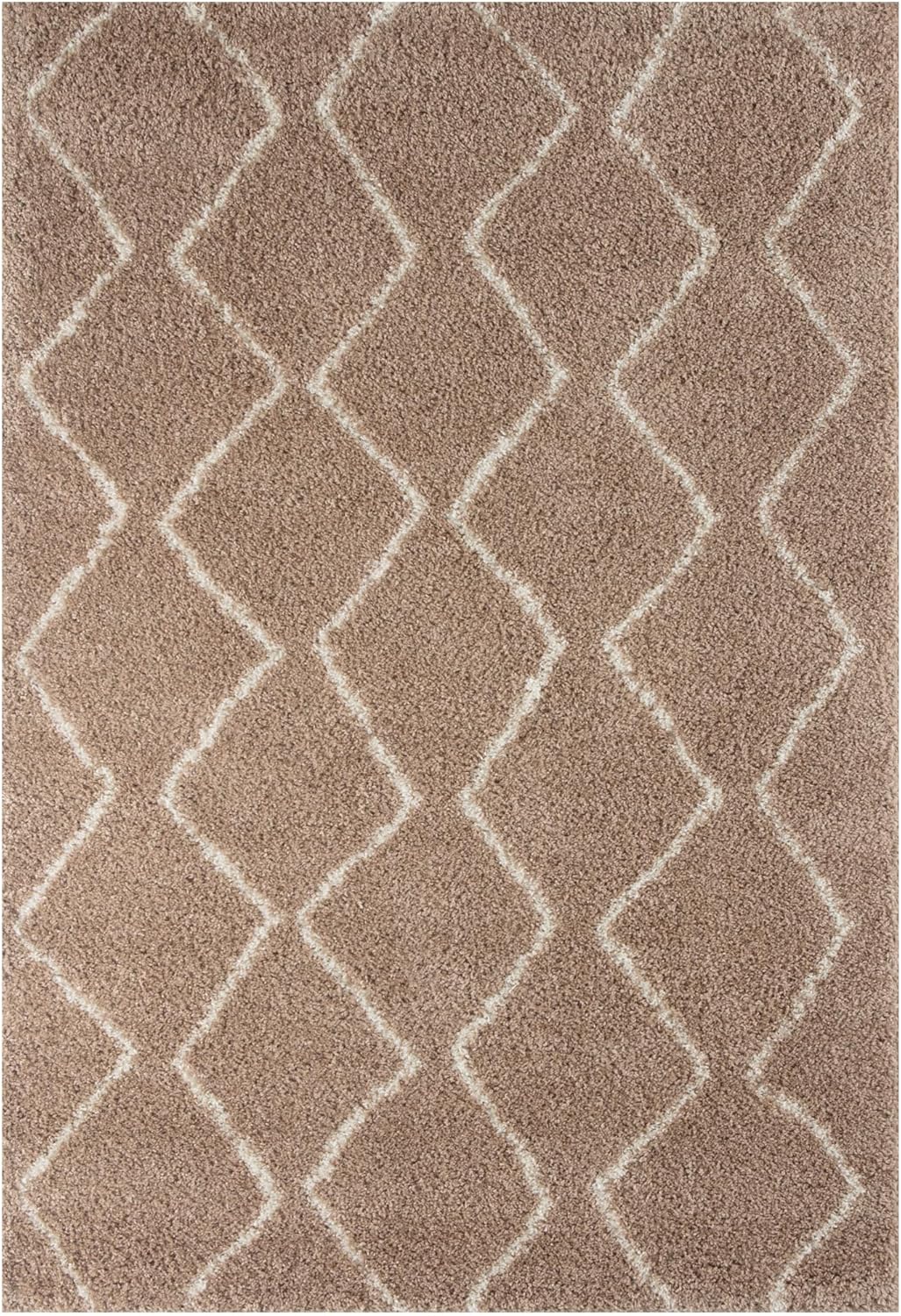 THE RUGS Modern Moroccan Design Living Room and Bedroom Rugs, Non-Shedding & Easy Care (Boho Beige/Ivory, 120×170 cm)