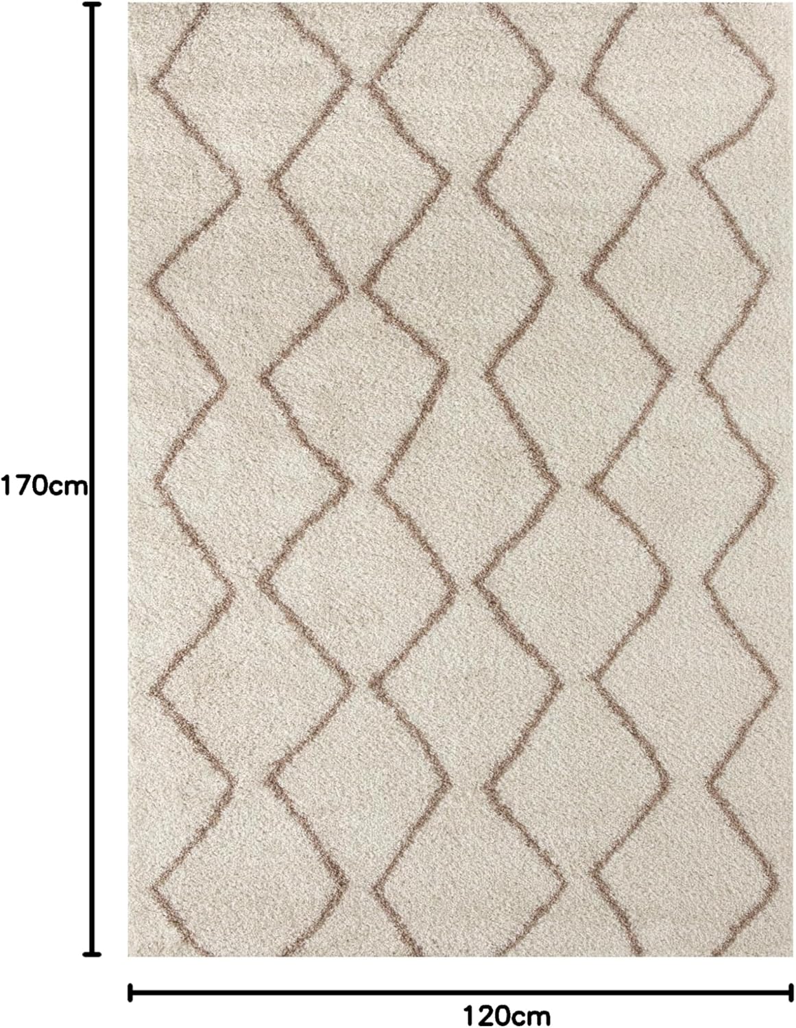 THE RUGS Modern Moroccan Design Living Room and Bedroom Rugs, Non-Shedding & Easy Care (Boho Ivory/Beige, 120×170 cm)