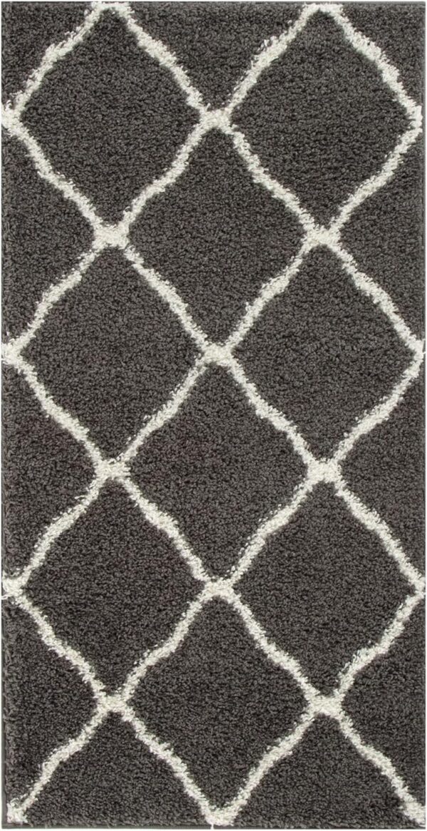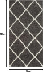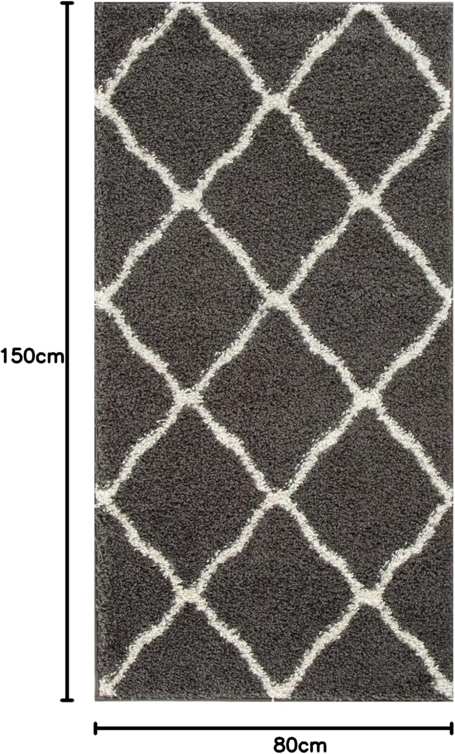 THE RUGS Shaggy Rug – Modern Moroccan Design Rugs for Living Room, Bedroom, Hallway, 3 cm Thick Area Rugs, (Moroccan Dark Grey/Ivory, 80x150cm)