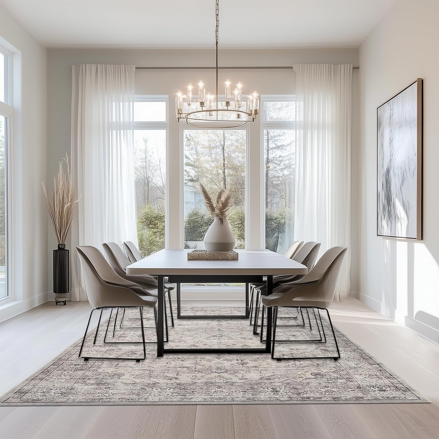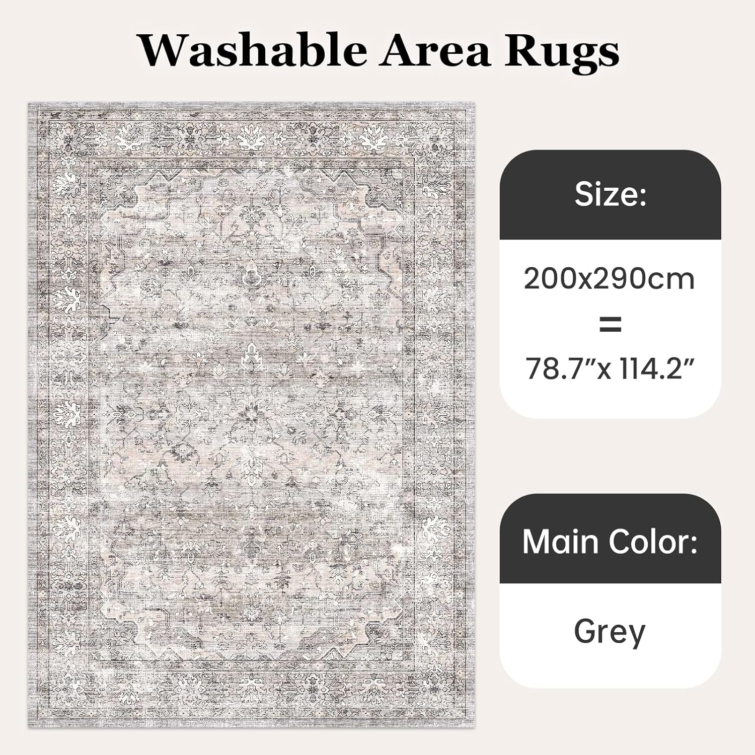 Topfinel Fluffy Rugs for Bedroom, Classic Oriental Design Boho Natural Grey Rugs 200×290 with Faux Wool Short Pile for Children Girls Boys