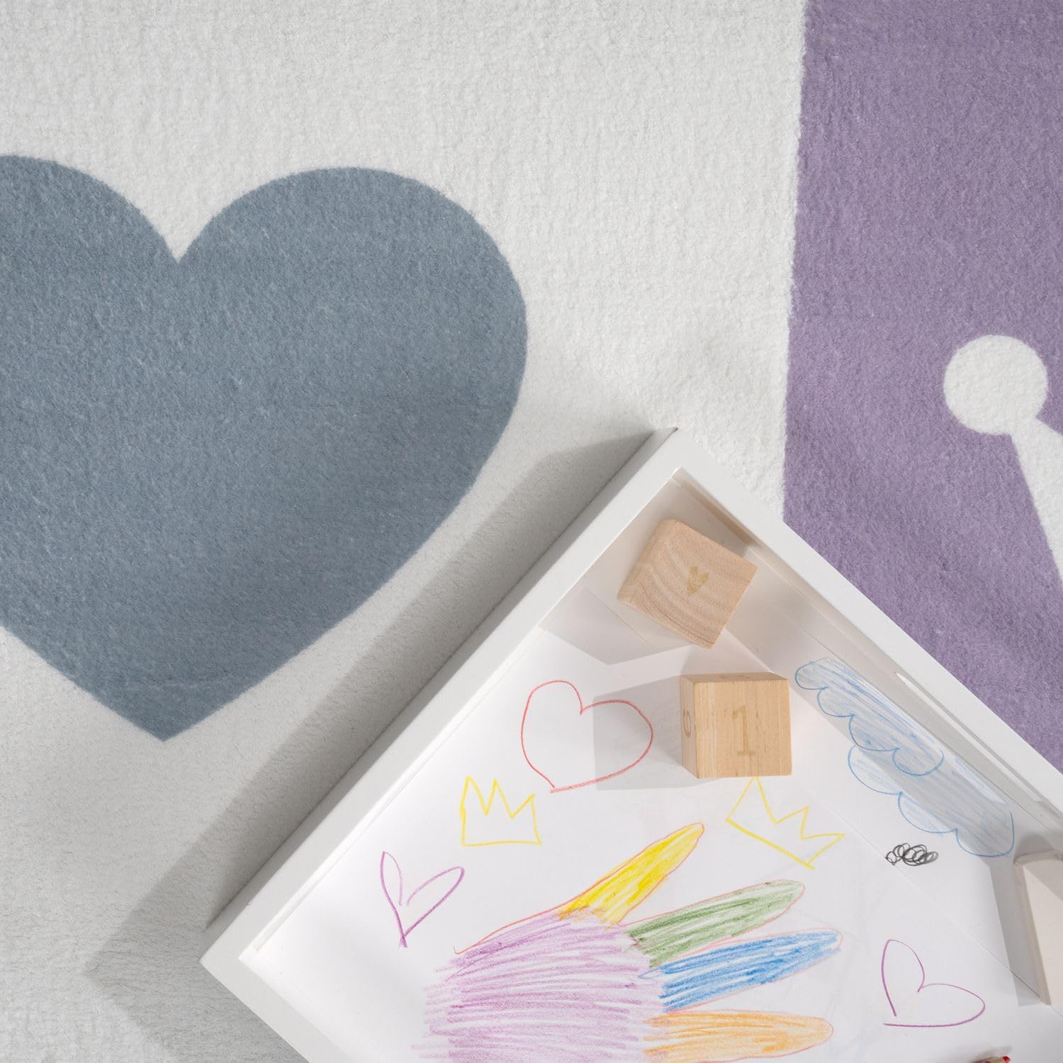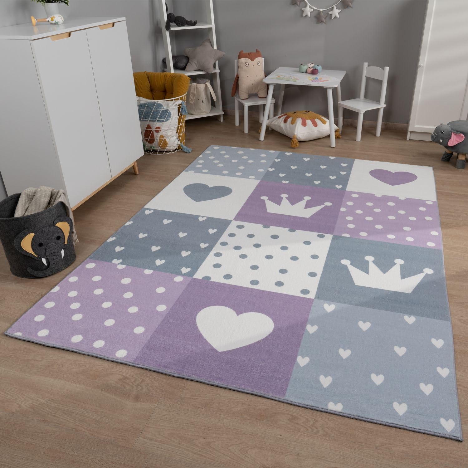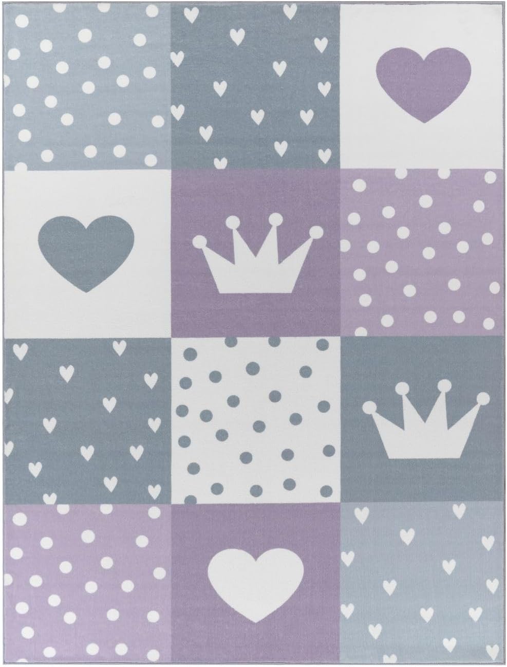 TT Home Nursery Rug Carpet Boy Girl Kids Carpet Baby Hearts Pastel, colour:Grey Beige Purple, Size:80×150 cm