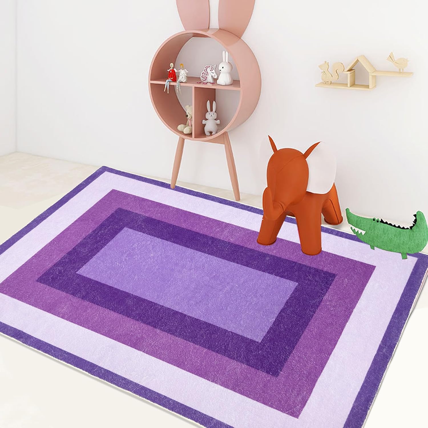 【Material】100% Microfiber,soft and non shed. This colorful striped kids rug with eye-catching style design,measured 47.2inchx71inch(120x180cm) .Our purple kids area rug provides enough area for children ‘s crawling, moving and playing. It is also very portable so you can use it freely.