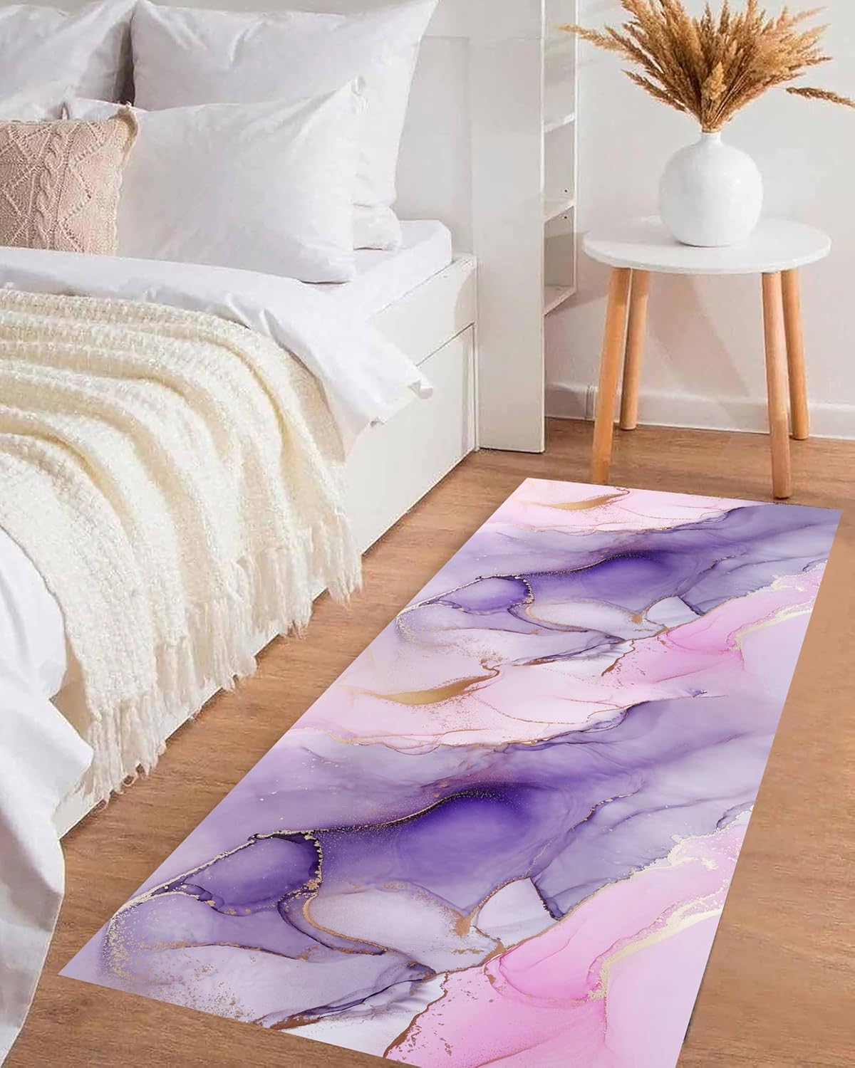 Versatile Use: Our Purple Gold Runner Rug Can Enhance Your Area from the Kitchen to the Study or Laundry. The Modern Marble Design Also Complements Contemporary Decor Styles, Making It an Exceptional Choice for Apartments and Homes Alike.