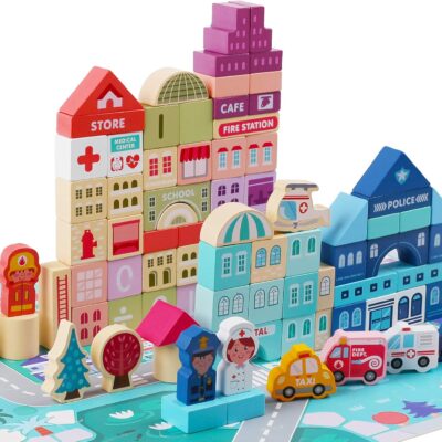 Voamuw Wooden Building Blocks for 3-6 Years Old Toddlers, Kids 120 Pcs City Construction Stacking Creative Preschool Education Toys for Boys and Girls