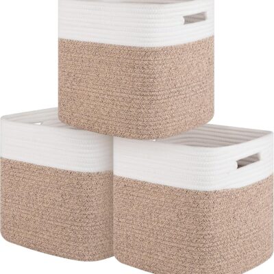 SIXDOVE Storage Cubes 11 Inch Cotton Rope Woven Baskets for Organizing, 3-Pack Cube Storage Bin | Square Baskets for Shleves, Closet, Baby Nursery Bins, Variegated Brown
