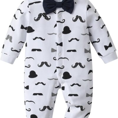 Baby Boys Romper Mustache print One Piece Jumpsuit Long Sleeve Baby Boys Outfits