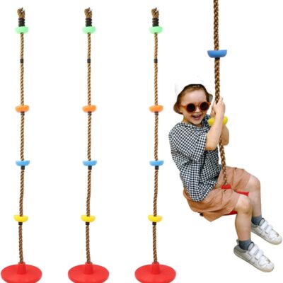 HYGRAD Garden Outdoor Kids Climbing Rope 2m / 6.5ft Kids Climbing Tree Swing with Foot Holder Platforms Disc Swing Seat For Kids over 3 Years Support 220lbs