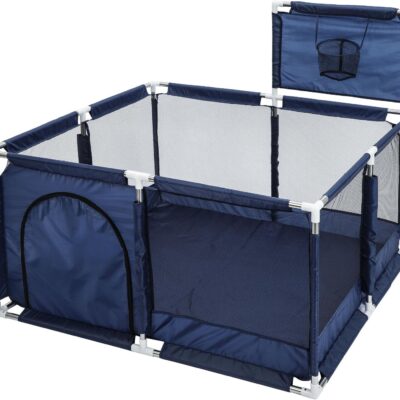 Supernic Baby Playpen Large Playpen Portable Child Safety Yard Activity Center with Basketball Hoop Toddler Fence with Breathable Mesh Extra Large Play Yard for Boys Girls Babies Blue