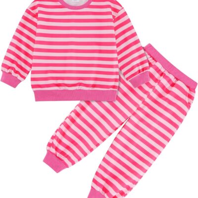 ESHOO Toddler Girls Clothes Set Stripe Knitted Pullover Sweatshirts Top Pants with 2 Pockets Kids Fall Winter Casual Outfits 2-7 Years