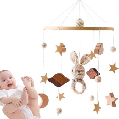 Baby Crib Mobile, Moon Stars Baby Mobile, Wooden Nursery Mobile, Wind Chime Baby Crib Toys, Nursery Mobile for Boys & Girls, Crib Mobile with Wind Chimes, Bassinet Mobile with Pendant,