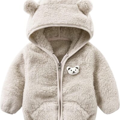 Alunsito Baby Boy Girl Fall Winter Clothes Long Sleeve Zipper Hoodie Coat Solid Color Fleece Jacket Bear Ear Hooded Outwear