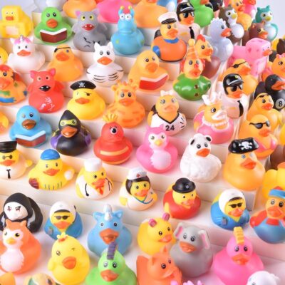 55 Pcs Rubber Ducks, Random Assortment Mini Rubber Duckie Toys with Mesh Carry Bag for Kids Baby Bath Shower Toys, Birthday Gifts, Summer Beach Pool Activity, Carnival, Holiday Party Favors