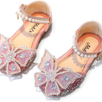 Girl Sandals Glitter Princess Shoes Dress Up Bling Bowknot Flats Comfort Mary Jane Dance Party Cosplay Shoe for Little Girls