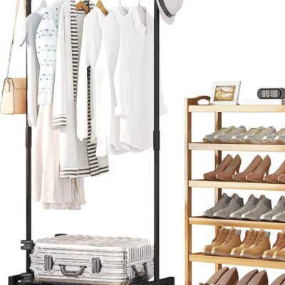 MLqkpwy Rolling Hanging Clothes Rack, Heavy Duty Clothes Rack, Standing Rolling Clothing Rack for Hanging Clothe, Portable Clothes Organizer, Rolling Clothes Organizer on Wheels