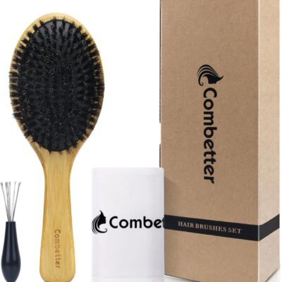 Combetter 100% Boar Bristle Hair Brush, Eco-Friendly Hairbrush for Women Men & Kids, Hair Smoothing and Massaging Detangling, Enhance Shine & Health, Professional Hair Brush for All Hair Types