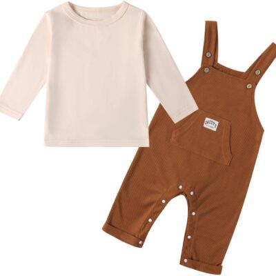 URMAGIC Baby Boy Clothes Overalls Toddler Fall Outfits Bodysuit Cute Jumpsuit Pants Set With Long Sleeve Stripe T-shirt
