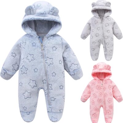 Fnaobai Newborn Winter Snowsuit Baby Girl Boy Bear Ear Fleece Hooded Romper Infant Footie Jumpsuit Outwear Coats
