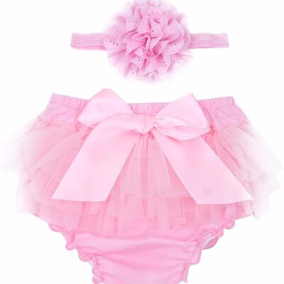 FEESHOW Infant Baby Girls Ruffle Bowknot Pettiskirt Bloomer Diaper Panties Cover with Headband Photography Prop