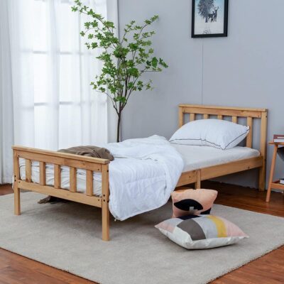 Panana 3FT Corona Single Size Bed,Solid Pine Wood Platform Bed Frame with Headboard (3FT bed high end)