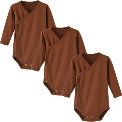 BINIDUCKLING Baby Long Sleeve Side Snap Bodysuit, 100% Cotton Baby Grows – Solid Baby Onesies for Boys Girls Newborn-12 Months, 3 Pack