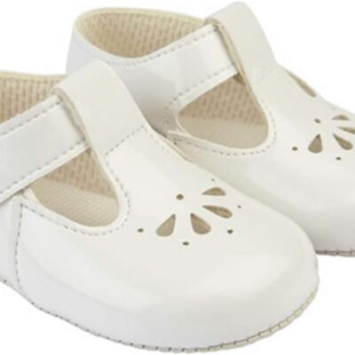 EARLY DAYS Baypods, B617 T Bar with Petal Punch, Pre Walker Baby Shoes Made in The Softest Faux Leather, Made in England