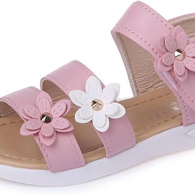 Girls Sandals with Pearls Flowers Leather Shoes Sandals for Little Girls