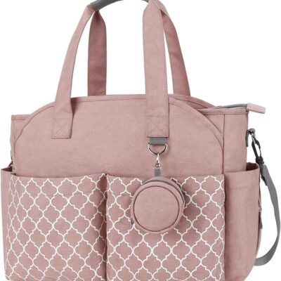 Perfeclan Baby Changing Bag with Bottle Bag Nappy Changing Bags Diaper Bag Baby Travel Bag Waterproof Nappy Bag Tote Adjustable Baby Bag Large Shoulder Bag for Women Ladies, Pink