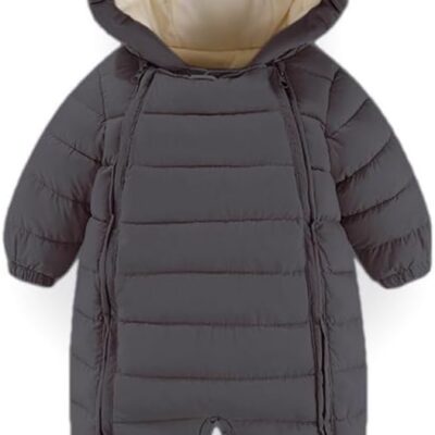 Valcatch Baby Girls Boys Snowsuit Coat Newborn Winter Clothes Infant Hooded Double Zipper Winter Warm Coat Jumpsuit Toddlers Solid Outerwear Puffer Jacket Age for 0-18 Months