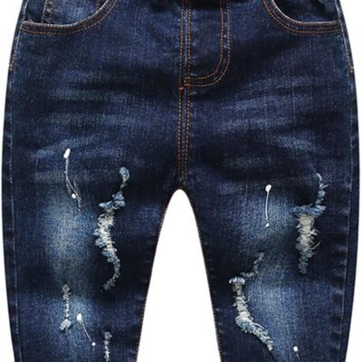 KIDSCOOL SPACE Baby Girl Boy Jeans,Little Kid Elastic Waist Ripped Denim Pants
