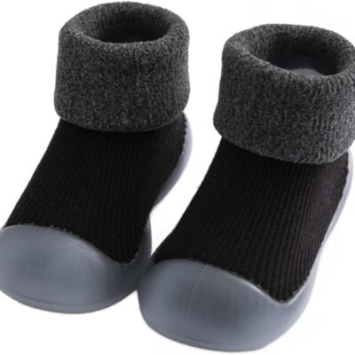 AIDIER Baby Toddler Winter Warm Sock Shoes Anti Slip Baby Boys Girls Thick Plush Slippers Socks Baby Fleece First Walking Shoes with Soft Rubber Sole for Girl Boy 9-12 Months Indoor