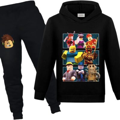 NAISISI Boys girls Sports Hoodie and Jogging Pants black tracksuit children Popular cartoon Sports pullover Two Piece Set