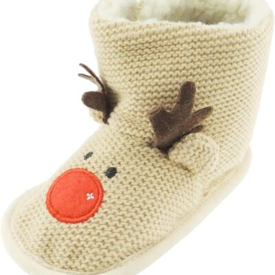 Glamour Girlz Baby Girls Boys Brown Knit Christmas Red Nosed Reindeer Boots Booties