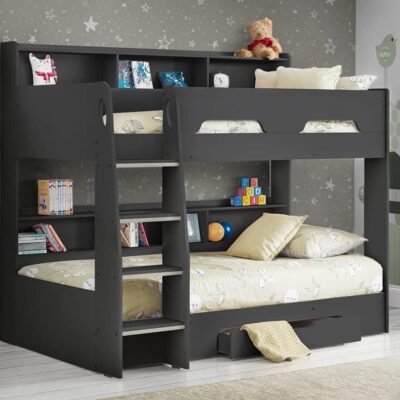Wooden Bunk Bed with Underbed Storage Drawer, Happy Beds Orion Oak Wood Modern Twin Sleeper (3FT – Frame Only, Anthracite)