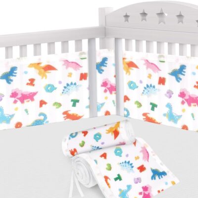 Aolso Cot Bumper, 2Pcs Breathable Mesh Cot Liner, Crib Rail Cover Baby Crib Bumper, Baby Boys Girls Nursery Breathable Crib Bed Liner Bumper (Dinosaur