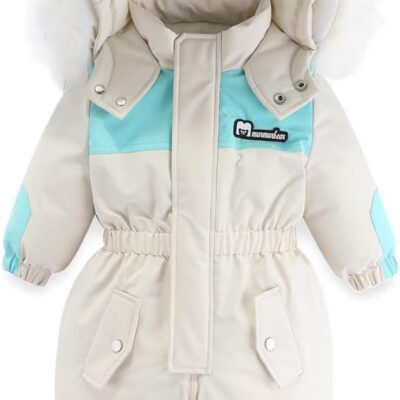 BRONG Baby Winter Snowsuit Boy Girl Hooded Romper Kids Fleece Coat Clothes Toddler Zipper Jumpsuit Windproof Outwear Ski Suit