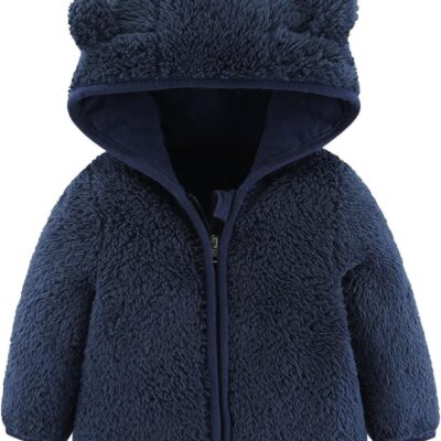 2024 New -Y9K Newborn Infant Baby Girls Boys Jacket Bear Ears Hooded Outerwear Zipper Warm Fleece Winter Coat Boys Warm Vest (Navy, 0-6 Months)