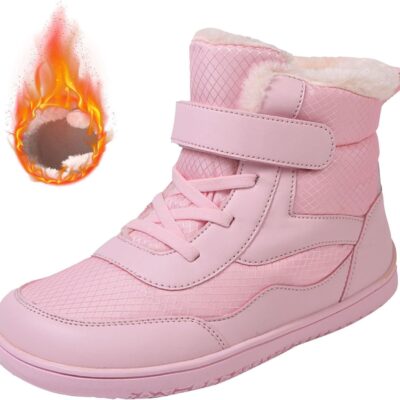 Leather 𝐖aterproof Snow Booties for Boys Childrens Fuzzy Lined Chunky Soft Sole Boots Shoes Winter Outdoor Ski Non Slip Boots for Toddler Boys Size 5 𝐖aterproof Kids Snow (Pink, 12 Little Child)