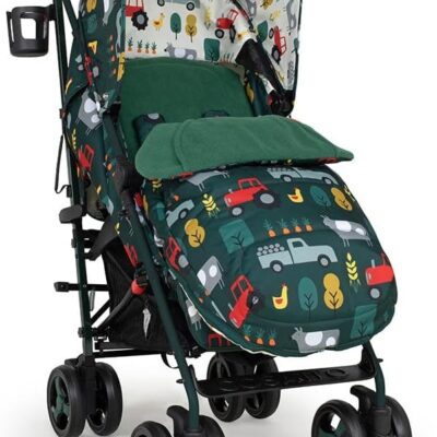 Cosatto Supa 3 Pushchair with Footmuff – Lightweight Stroller from Birth to 25Kg – Easy, Compact, Umbrella Fold, Large Shopping Basket, Carry Handle Footmuff (Old Macdonald)