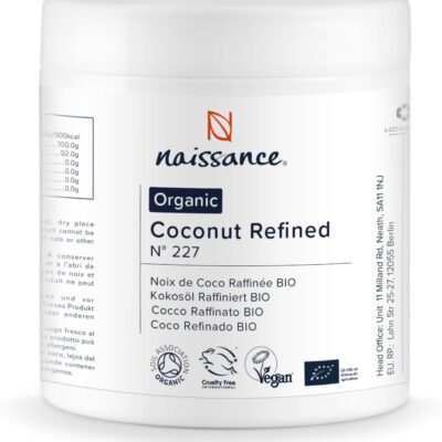 Naissance Organic Refined Coconut (Solid) Oil (No. 227) 500g – Moisturising, Hydrating – for Aromatherapy, Skincare, Haircare, DIY Beauty