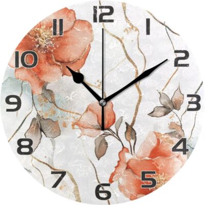 Ewusp Watercolor Flowers Wall Clock Battery Operated Silent Non-Ticking Clock Round Quartz Decorative Clock for Kitchen Living Room Bedroom Office School Nursery, 25×25 cm
