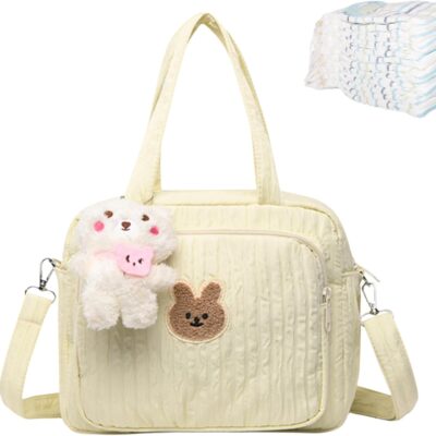 Nlrlo Diaper Messenger Bag, Diaper Bag Tote Wallet, Large Nursery Storage Basket Portable Holder Tote Bag – Tote Bag, Multi Pocket Car Organizer for Boys Girls Nursery, beige, 説明を参照してください, See