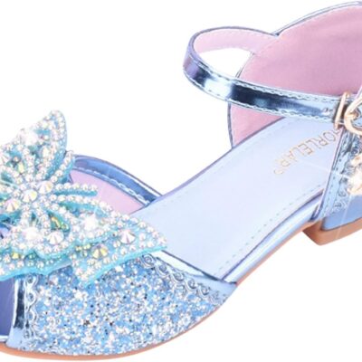 Girls Kids Sequins Pearl Bow Sandals High Heels Ankle Closed Toe Summer Shoes Slip On Comfy Dress Dance Loafers Toddler Boys Sandals Size 9c Big Kid Slide Sandals(