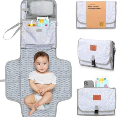 Baby Diaper Changing Pad – Portable Waterproof Diaper Changing Mat – Folding Diaper Changing Station – Travel Diaper Change Pads – Changing Clutch – Detachable Stroller Hooks – Baby Gift (Gray Mod)