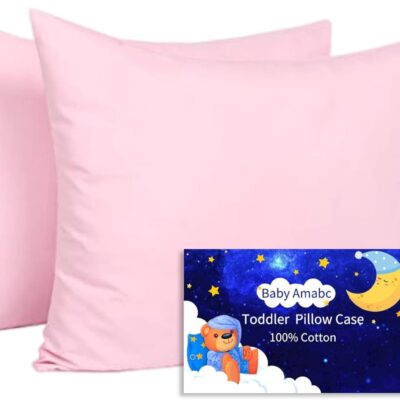 Baby Toddler Pillowcase Cot Bed Pillow Cover Set 40 x 60cm, Organic Cotton Kid Pillow Cases 2 Pack, Small Soft Infant Travel Pillowcases Pair with Envelope Closure for Girl Bedding,Crib Mattress