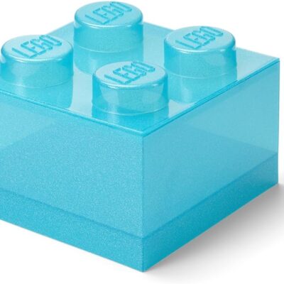 Room Copenhagen LEGO Storage Brick 4 Knobs Glitter Light Blue – Stackable Plastic Storage Box with Lid for Kids and Adults Desk Organizer and Toy Box