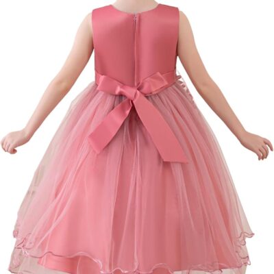 Lenefu Flower Girl Dress Toddler Formal Dress Birthday Party Wedding Floral Embroidered Tulle Satin Dresses for Kids 2-12Y