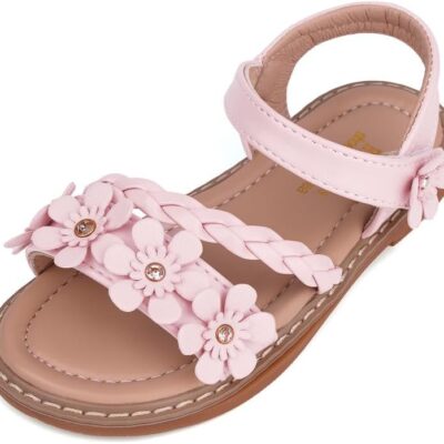 ANBIWANGLUO Girls Sandals Toddler Girls Flower Summer Sandals Little Girl Leather Sansals Open Toe Holiday Vacation Shoes