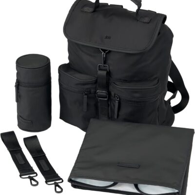 BABABING – Sustainable Baby Changing Backpack with Adjustable Shoulder Straps, Nappy Changing Bag with Change Matt, Insulated Bottle Holder & Pram Clips, Newborn Essentials – Black