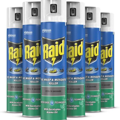 Raid Fly, Wasp & Mosquito Killer with Eucalyptus Aroma Oil, Fly Killer Spray For Indoor Use, Pack of 6 (6 x 300ml)