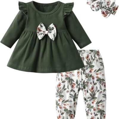 Joureker Infant Baby Girl Clothes Long Sleeve Ruffle Tops and Floral Printed Pants Toddler Baby Girl Outfits Sets